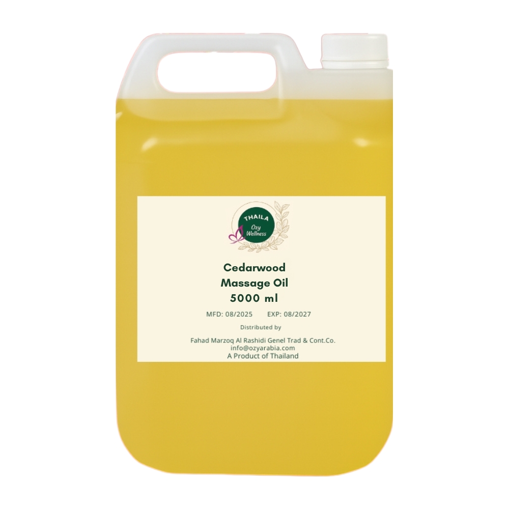 Discover the calming and grounding benefits of Cedarwood Massage Oil, carefully imported from Thailand and formulated for professional massage and wellness treatments. Known for its warm, woody aroma, cedarwood oil helps promote relaxation, relieve tension, and create a balanced massage experience. Available in 1-liter and 5-liter sizes, it is ideal for spas, salons, and wellness centers in Kuwait.