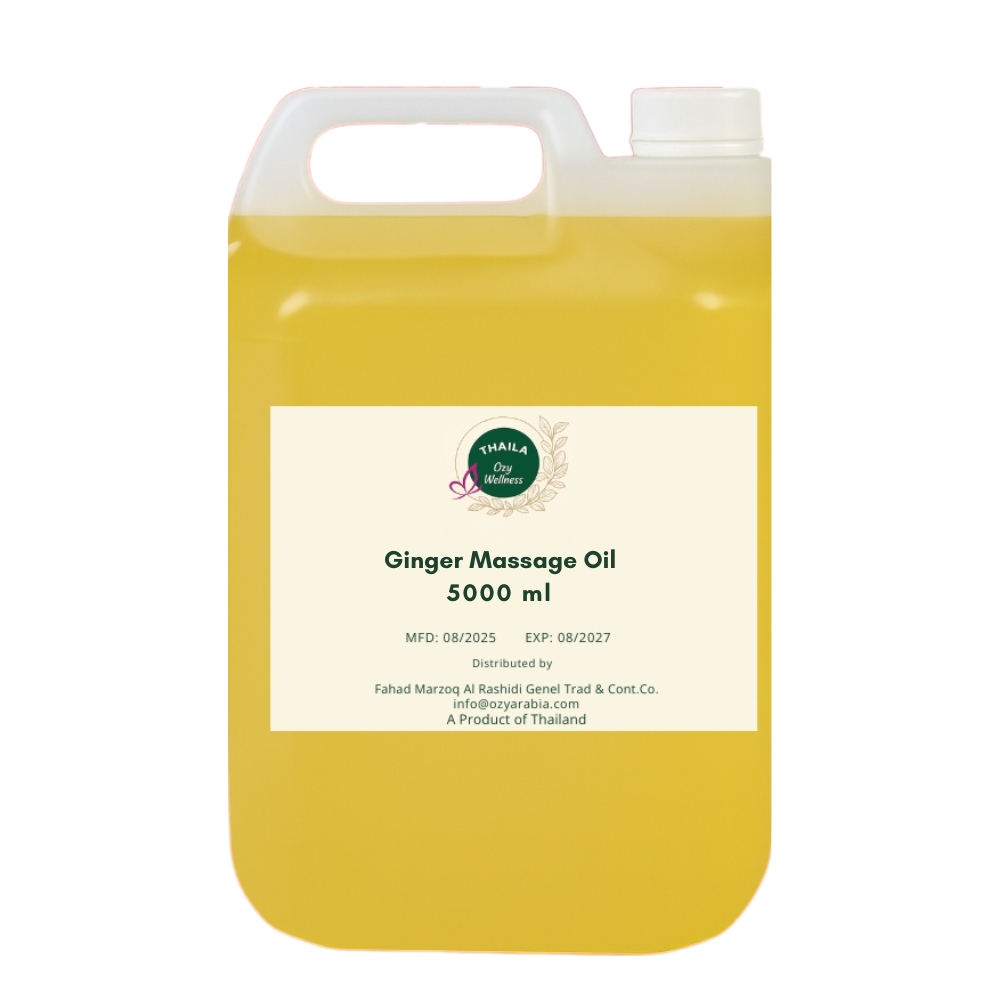 Experience the natural warmth and therapeutic benefits of Ginger Massage Oil, carefully imported from Thailand and formulated for professional and home use. Known for its stimulating and soothing properties, this massage oil is ideal for relieving muscle tension, improving circulation, and promoting deep relaxation. Available in 1-liter and 5-liter sizes, it is perfect for spas, wellness centers, and massage therapists in Kuwait.